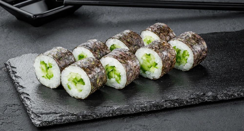 Найпростіший і найдешевший спосіб збалансувати вечерю. Соковитий огірок хрустить, а рис та норі створюють звичну базу. Це ідеальний перепочинок між шматочками з жирною рибою чи важкими запеченими соусами.